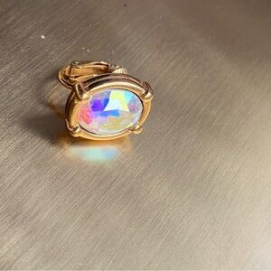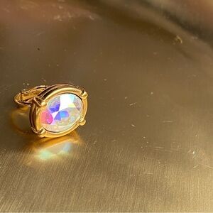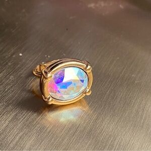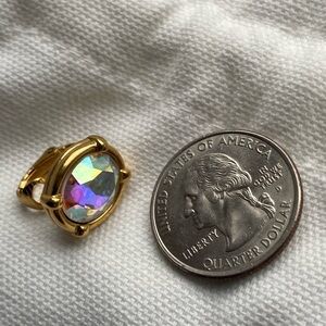 SWAROVSKI Aurora Borealis style gold tone single crystal clip on earring