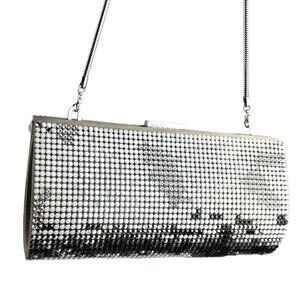 Feel like you're on the red carpet with this authentic and rare Swarovski clutch bag! It is adorned with multi-colored crystals: black, white, pearl, silver, clear, and has a removable 17" silver snake link chain so you can wear it as a clutch or a hand bag!