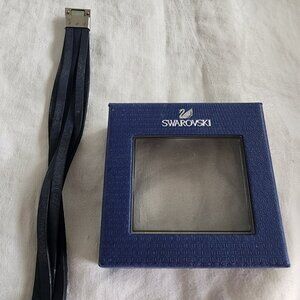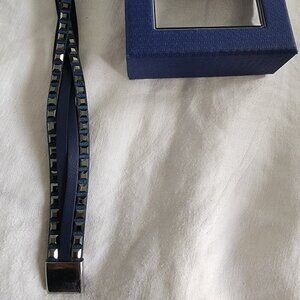 SWAROVSKI CELEB BRACELET WITH SQUARE CRYSTAL NAVY LEATHER STRAPS