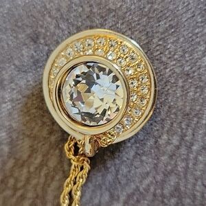 Swarovski Swan is imprinted on the bottom of the pendant. Pendant is full of the gorgeous Swarovski Crystals with a very large one in the middle. Pendant is heavyweight and measures a little over an inch.