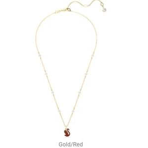 🔹️SWAROVSKI 🔹️Crystal pearl, Red Swan Gold-tone plated Necklace