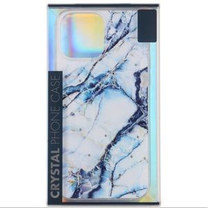 SWAROVSKI Crystals Navy White Marble Granite iPhone 12 13 PRO MAX Case