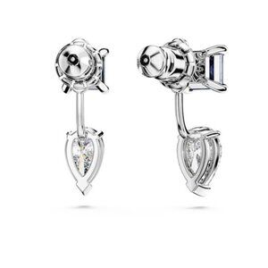 These attractive Mesmera earrings are a versatile and spellbinding choice. The pierced design is rhodium plated and features a pair of prong-set Swarovski Zirconia in pear and square cuts. Wear them as single blue studs or adjust the height of the detachable pear-cut drop to suit your style. A perfect gift to inject any evening outfit with elegance and color.