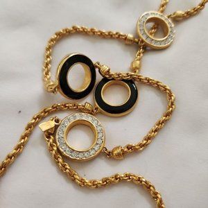 SWAROVSKI NECKLACE WITH CRYSTAL AND BLACK ENAMEL INSETS IN ROUND MEDALLIONS
