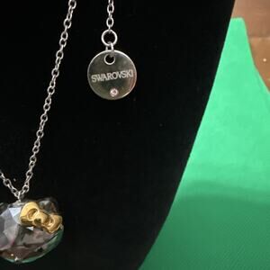 SWAROVSKI SANRIO HELLO KITTY CRYSTAL FACE JET GOLD RIBBON NECKLACE