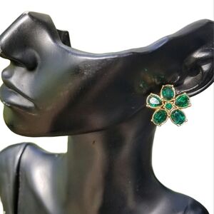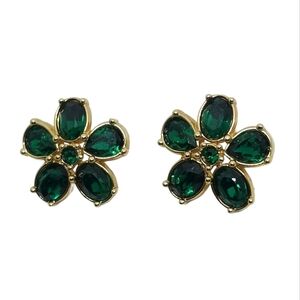 SWAROVSKI SAVVY COLLECTION GOLDTONE & EMERALD GREEN CRYSTAL FLOWER EARRINGS