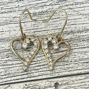 SWAROVSKI SIGNED RMM LOVELY CRYSTAL HEART DANGLE DROP EARRINGS -GOLD FILLED