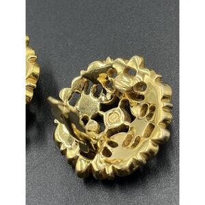 SWAROVSKI Swan Vintage Large Round Black, Clear Crystal Gold Tone Clip Earrings