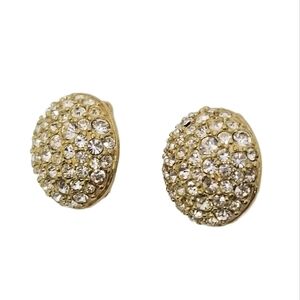 SWAROVSKI VINTAGE 1990s GOLDTONE & PAVE CRYSTAL ROUND CLIP ON EARRINGS