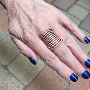 Genuine SWAROVSKI crystal elements* adorn this super stylish and on trend wide curved statement cocktail ring. NWOT