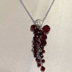 Vintage Swarovski crystal pendant with deep red Swarovski crystals, small silver colour ball details. and a silver plated chain with lobster clasp closure.