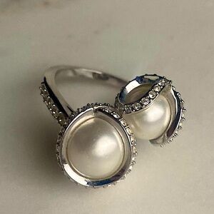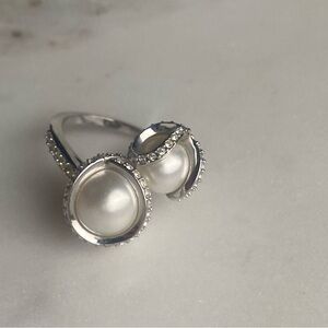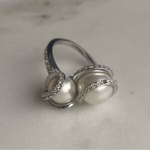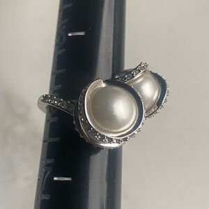 SWAROVSKI faux Pearl silver tone ring size 6