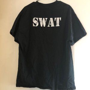 SWAT in small white letters on left chest, SWAT in white across back in big letters