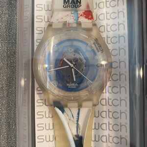 Vintage Swatch watch featuring the blue man group. What a show!!! In original packaging. Thank you for visiting my shop.