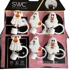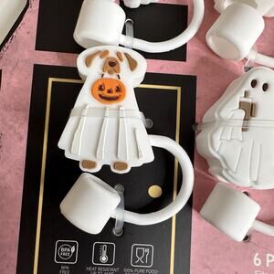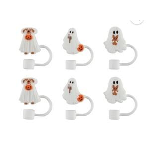 SWC 6 Piece Straw Toppers Ghosts Dogs White Halloween New