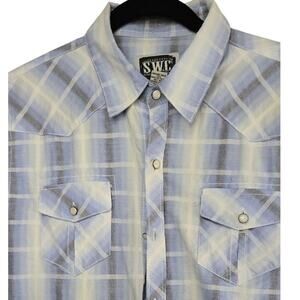 SWC Sunday Work Clothes Blue Plaid Short Sleeve Button-Up Shirt Size Large