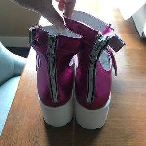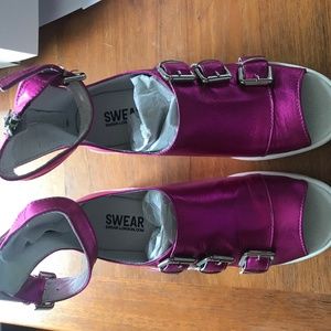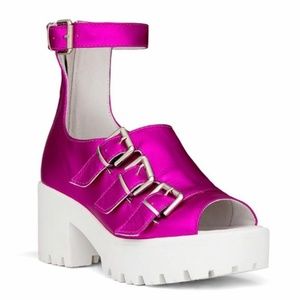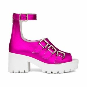 SWEAR. Hot Pink Leather Platform Sandals, Chunky Heel, Buckles & Zipper. Sz 8