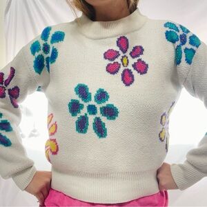 details: Bright and fun floral sweater. Perfect for adding a pop of color to your outfit.