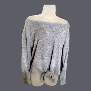 SWEATER, Crop Tie by Allison Joy Women's Heather GRAY Pullover Size Small
