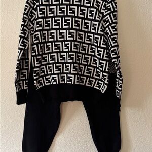 SWEATER SET: Black & White w/Matching Pants, EUC