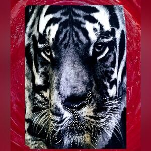 SWEATER with TIGER & RHINESTONE Whiskers SOFT! 2 sides rushed
