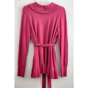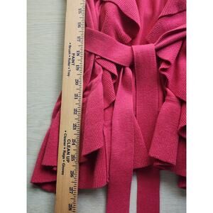 SWEATER/CARDIGAN-CASLON-Raspberry Red-Ruffles-Waist Tie-Long Sleeves-Size MED