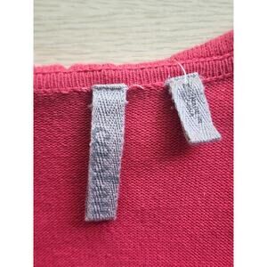 Nice long cardigan sweater by Caslon. This is a sweater sold at Nordstrom and is NEW WITH TAG. It is a raspberry red color. The front has a ruffle down the neckline to the bottom hem. It has long sleeves. There is a waist tie and no buttons. It looks like it would hit at the hip area. It is SIZE MEDIUM. NEW WITH TAG.