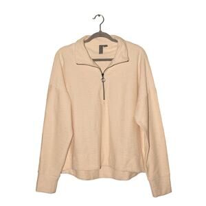 SWEATY BETTY $170 Rest Up Half Zip Pullover Textured Cream Size 12