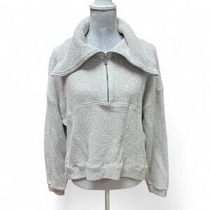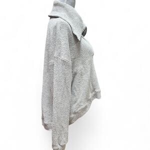 SWEATY BETTY Boucle Gray Cotton Blend Half Zip Funnel Neck Sweater Size L