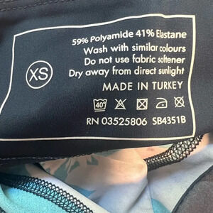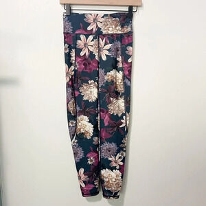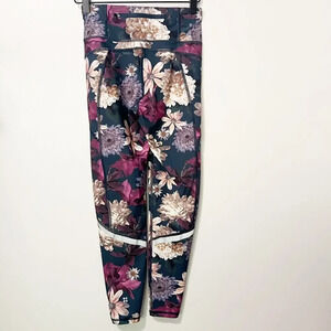 Floral purple and cream printed navy leggings from Sweaty Betty.