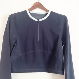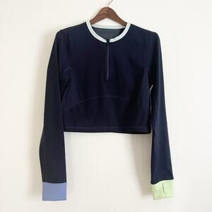 SWEATY BETTY Power Half Zip Long Sleeve Crop Top Blue XL