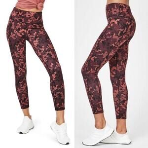 SWEATY BETTY Yoga Super Sculpt 7/8 Leggings In Rust Camo, Size XS, High Waist, High Waisted, High Rise, Hi Rise, Red Pink Black Camo Print, Excellent Condition with No Flaws or Signs of Wear.