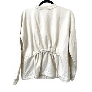 Ivory crewneck sweatshirt. Cinched back detail with drawstring. Front pouch. Polyester, cotton blend. Great preloved condition - worn once! Size small