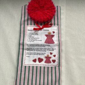 Add festive charm to your holiday kitchen décor with this adorable Christmas kitchen towel featuring a Sweet Angel Sugar Cookies recipe patch.