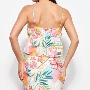 EXCLUSIVE TROPICAL PRINT CAMI - exclusive tropical print - adjustable spaghetti straps - fully lined - Model is 5'8" and wearing a size small Fabric Contents: Self 100%Cotton / Lining 100%Rayon