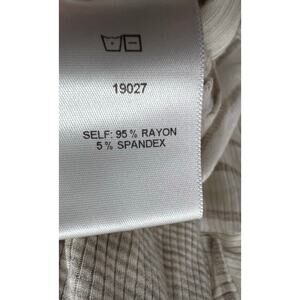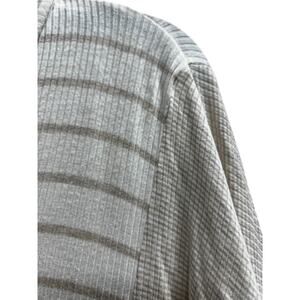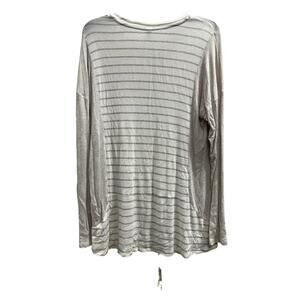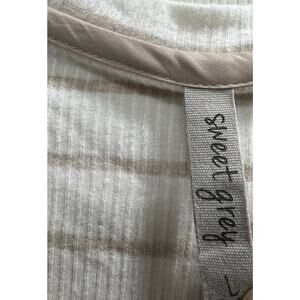 SWEET GRAY tan white Jersey knit national striped check blouse weekend sz L