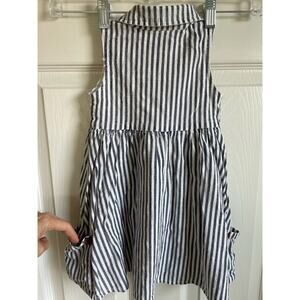 SWEET HONEY Toddler Girls 2T Striped Dress Pockets Cotton Linen Blue White