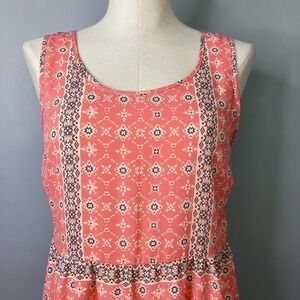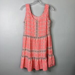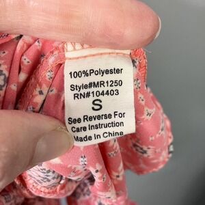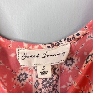 Sweet Journey Peachy Pink Casual Crepe Satin Sleeveless Mini Ruffle Dress Women's Size S.  Scoop neckline with ruffle detail at the hem, this mini dress is perfect for casual summer days.  Floral print.  There is no stretch to this woven crepe satin lightweight fabric, so be sure to check the measurements.
