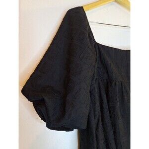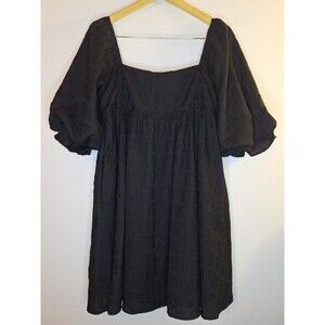 This SWEET LEMON Black Puff Sleeve Baby doll Mini Dress in size M is a perfect blend of whimsical and gothic styles, making it a versatile piece for various occasions such as weddings, parties, or casual wear. The dress features a square neckline, pullover closure, and short puff sleeves, adding a touch of femininity to the outfit. Made from a canvas fabric with a solid black color, this lightweight oversized dress is lined, oversized, and has a high waist for a flattering fit. It also includes pockets and is machine washable for easy care. Suitable for the summer, fall, and spring seasons, this dress is adorned with various character accents like Belle, Fairy Grunge style. PTP 17 in. Length 35 in.