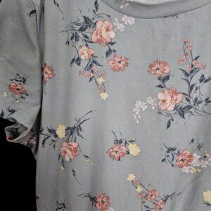 * SWEET TEA’S Blue Green Floral Print Peplum Short Sleeved Top Ladies SMALL