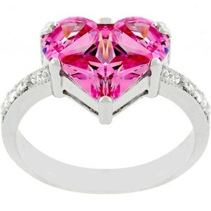 Genuine Rhodium Plated Ring Centered with a Trio of Pink Ice Color Cubic Zirconia and Clear Cubic Zirconia Accents in a Prong Setting Polished into a Lustrous Silvertone Finish