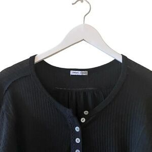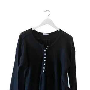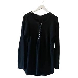 SWEET ROMEO Waffle Knit Oversized Henley Tunic Top in Optic Black Size 1X