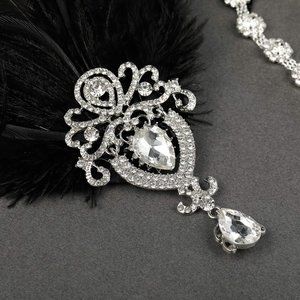 ❀The 1920s Headpiece features =Ivory feather that embellishes a deco setting of gorgeous and shiny crystal, end with white/ black satin ribbon. Additionally, it is consists of two parts, feather clip can be detached from the headband.