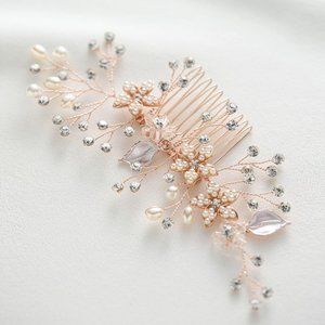 SWEETV Rose Gold Bridal Hair Comb Clip - Rhinestone Wedding Hair Accessories