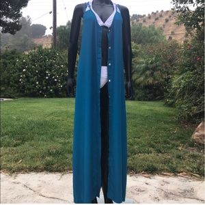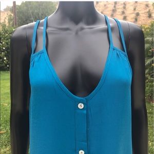 This ultra soft olive color maxi gives of an earthy boho vibe. Sleeveless with double spaghetti straps. V neckline. Button placket down the front. Can be unbuttoned to wear as a beach cover up. Relaxed and lightweight fit in 100% rayon. Medium 6-8, fits bust 35"-37",waist 26"-28", hips 36"-38". Measures 17" armpit to armpit, 19" across the waist. Length from top of shoulder to hem 59". Made in USA.( blue dress shown for fit. This listing is for the Olive Dress)