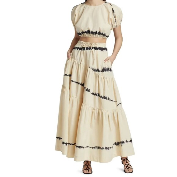 SWF Abode Maxi Skirt Cream Tie Dye Elastic Waist Size XS EUC