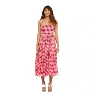 This colourful dress features a straight neckline, thick straps, fitted bodice with shirring through the back, loose skirt and pockets. This versatile dress can be worn to any event to lively up the party, from the spring races to a night out. Made in Australia.