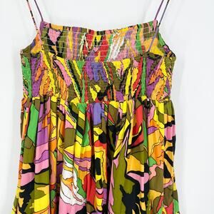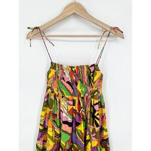 SWF Birds of Paradise A-Line Dress Smocked Square Neck Tie Shoulder Midi Floral
