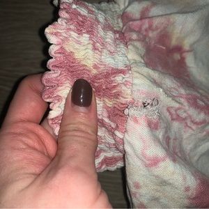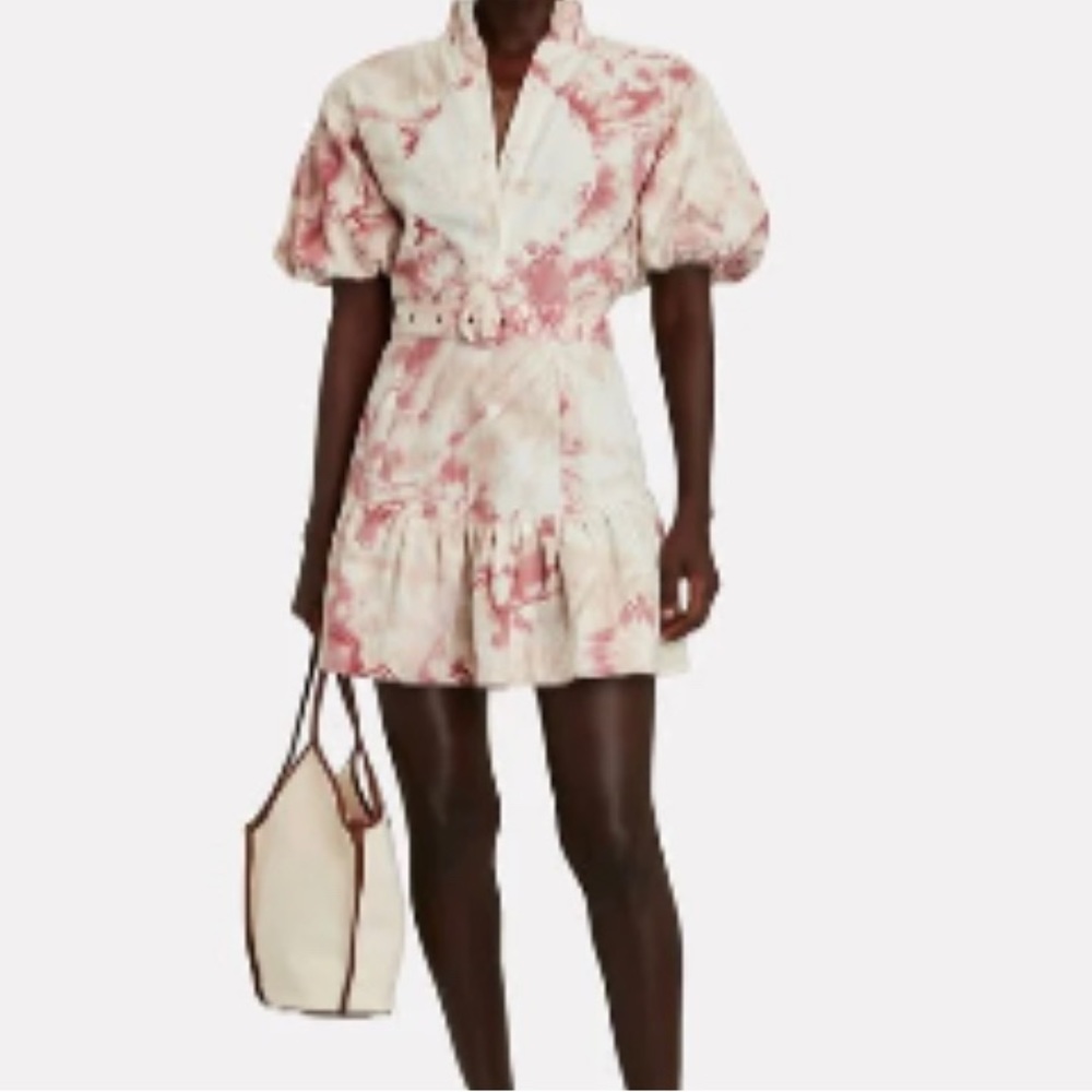 Puffed along petite sleeves and a leg-lengthening hemline, SWF smocks their belted mini along a high neckline in their rigid tie-dyed cotton. Partial button front closures. Side zip closure.