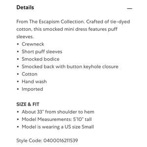 S/W/F Escapism Treasure White Pink Smocked Tie Dye Mini Dress S $279